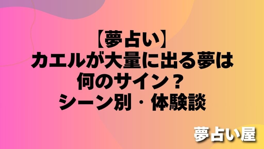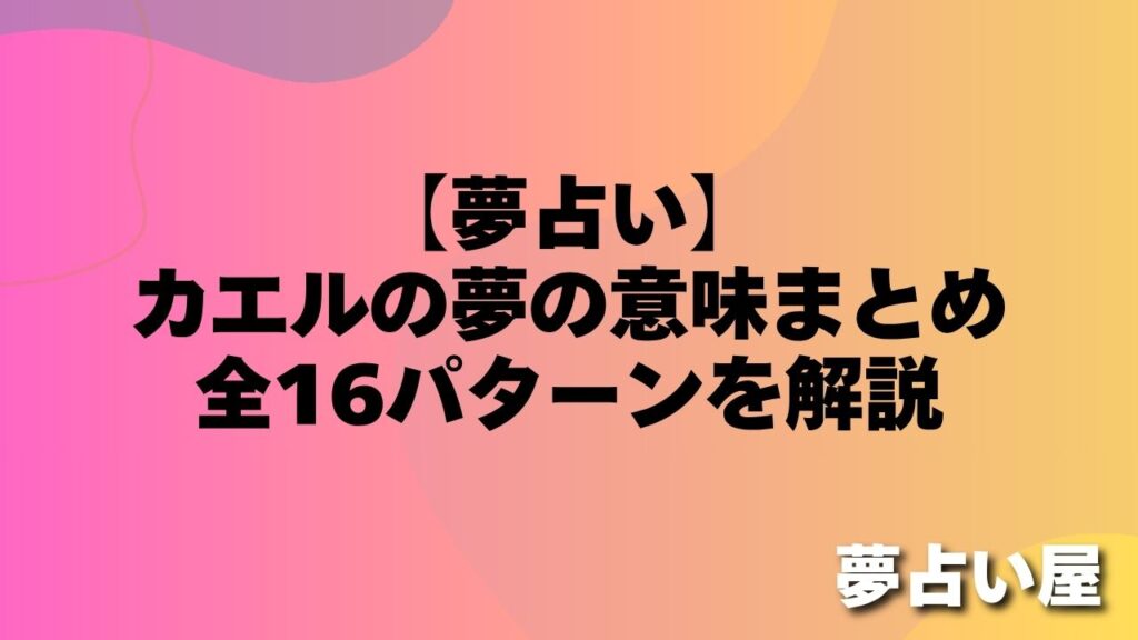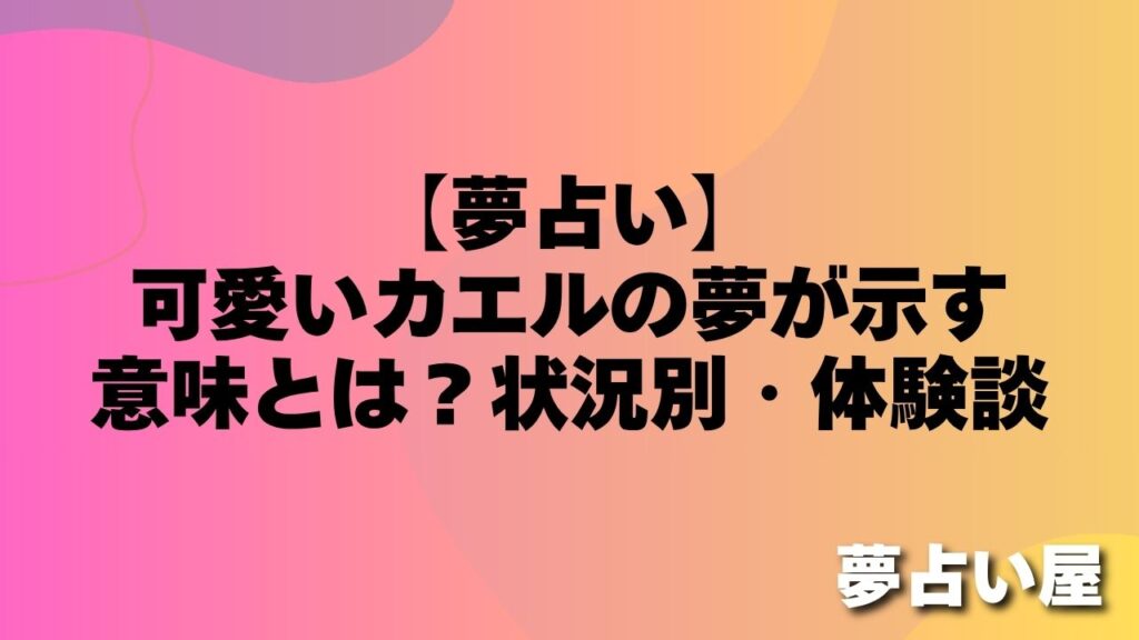 「夢の中に突然カエルが出てきて、目が覚めてからもなんだか気になっている…」 「カエルに追いかけられる夢を見た。これって凶夢?それとも何かいいことの前触れ?」 カエルの夢は、夢占いの中でも非常に縁起の良い象徴として知られています。「カエル(帰... -
