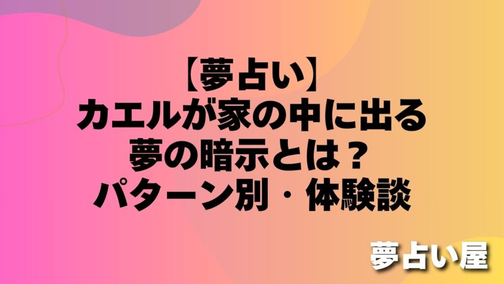 【夢占い】カエルが家の中に出る夢の暗示とは?パターン別・体験談