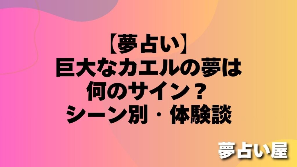 「人の背丈ほどもある巨大なカエルが夢に出てきて、ただじっとこちらを見ていました。不思議な圧迫感がありました。」(30代・女性) 「車くらい大きなカエルが追いかけてくる夢を見ました。スケールが大きすぎて恐怖でした。」(20代・男性) 巨大なカエ... -