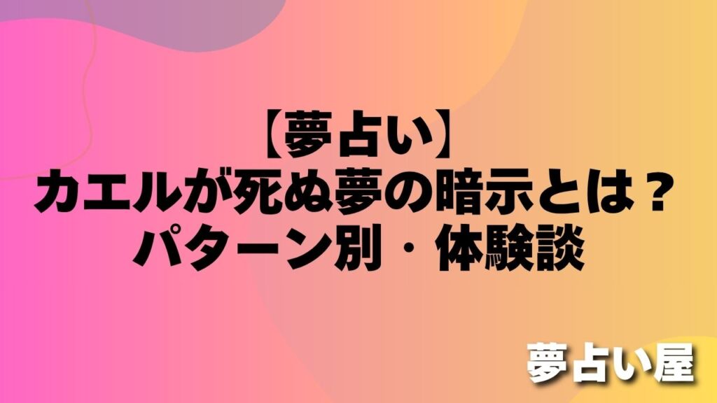「夢の中でカエルが死んでいるのを見て、何か悪いことが起きる前触れじゃないかと心配になりました。」(40代・女性) 「カエルを踏んで死なせてしまう夢を見ました。罪悪感で目が覚めて、気になっています。」(20代・男性) カエルが死ぬ夢は、一見する... -