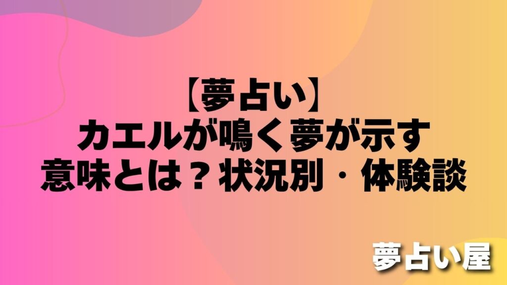「夢の中でカエルが元気よく鳴いていて、とても賑やかな夢でした。目が覚めても声が耳に残っていた気がします。」(30代・女性) 「カエルが一匹だけ静かに鳴いている夢を見ました。なんとなく寂しい感じがして不思議でした。」(40代・男性) カエルが鳴...