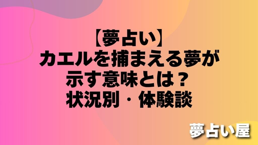 【夢占い】カエルを捕まえる夢が示す意味とは?状況別・体験談