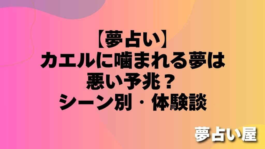 「夢の中でカエルにいきなり噛まれて、痛みで目が覚めました。なんだか嫌な予感がして…」(30代・女性) 「カエルに指を噛まれる夢を見ました。血が出ていたような気がして不安です。」(20代・男性) カエルに噛まれる夢は、多くの方が目覚めた後も動揺を... -
