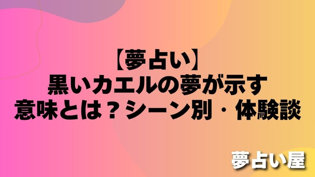 「夢の中で真っ黒なカエルが現れました。なんとなく不吉な感じがして、目が覚めてからも気になっています。」(30代・女性) 「黒いカエルが私をじっと見ている夢でした。威圧感があって怖かったです。何か警告なのでしょうか。」(20代・男性) 黒いカエ... -