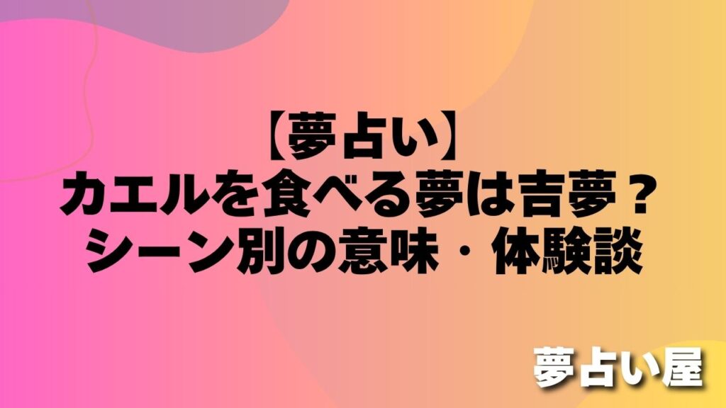 「夢の中でカエルを食べていました。現実ではありえないのに、夢の中では当たり前のように食べていました。」(30代・男性) 「カエルを食べる夢を見て、目が覚めたとき気持ち悪かったです。でも何か意味があるのか気になりました。」(20代・女性) カエ... -