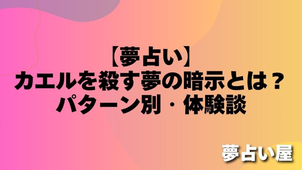 「夢の中でカエルを踏んで殺してしまいました。わざとではないのに、罪悪感で目が覚めました。」(30代・女性) 「夢の中でカエルを殺す夢を見て、自分でも驚いていました。普段はそんなことしないのに、不思議です。」(20代・男性) カエルを殺す夢は、... -