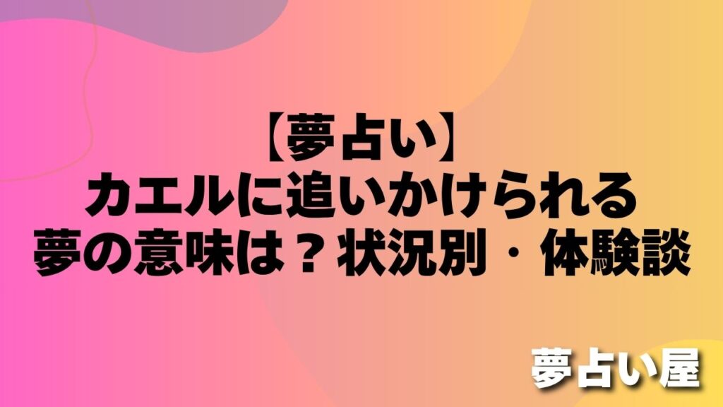 「カエルの大群に追いかけられて必死に逃げる夢を見ました。目が覚めてもドキドキが止まりませんでした。」(30代・女性) 「大きなカエルにずっと追いかけられる夢で、逃げ切れないまま目が覚めてしまいました。」(20代・男性) カエルに追いかけられる... -