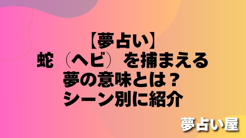 【夢占い】蛇(ヘビ)を捕まえる夢の意味とは?シーン別に紹介