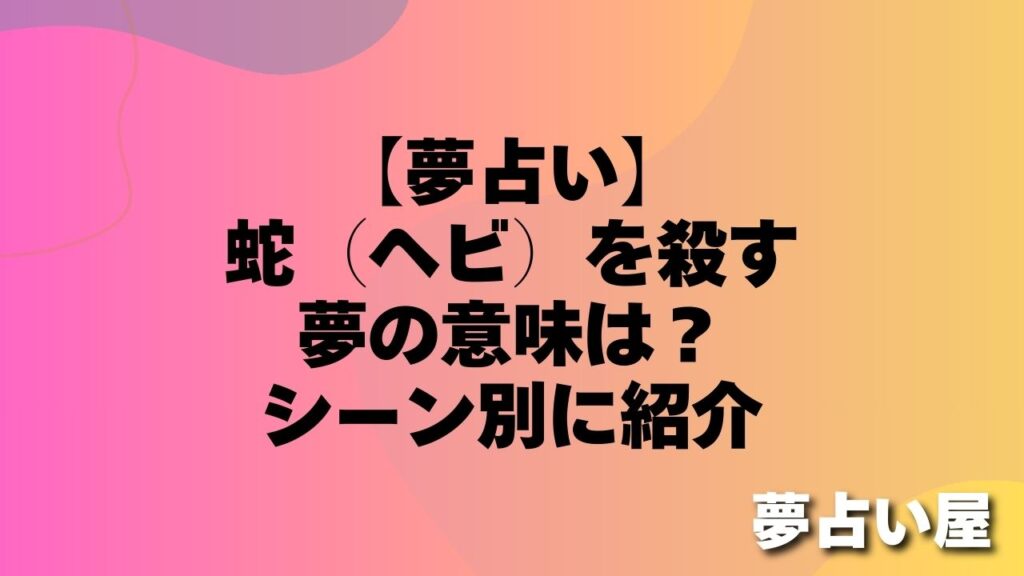 「神様の使いとも言われる蛇を、夢の中で殺してしまった…」 「蛇を退治する夢を見たけれど、バチが当たるんじゃないかと不安」 縁起の良い生き物とされる蛇を自らの手で殺してしまう夢を見ると、何か不吉なことが起きる前触れなのではないかと焦ってしまい...