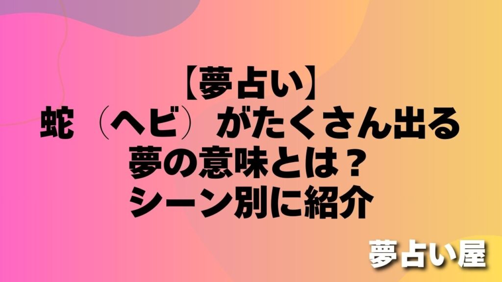 「足元にウジャウジャと無数の蛇が蠢いていて、鳥肌が立ちながら目が覚めた…」 「色々な種類の蛇が大量に出てきて、なんだか不思議な気分になった」 ただでさえインパクトの強い蛇ですが、それが「たくさん」登場する夢を見ると、強烈な不気味さや、何かと... -