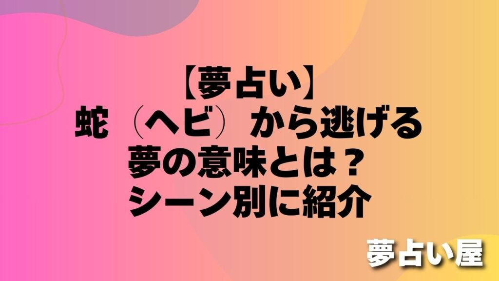 「大きな蛇から必死に逃げる夢を見て、汗びっしょりで目が覚めた…」 「蛇から逃げる夢は、もしかして幸運が逃げてしまうサイン?」 夢の中で蛇に遭遇し、思わず逃げ出してしまうという経験は、目覚めた後もドキドキとした焦燥感が残って不安になりますよね... -
