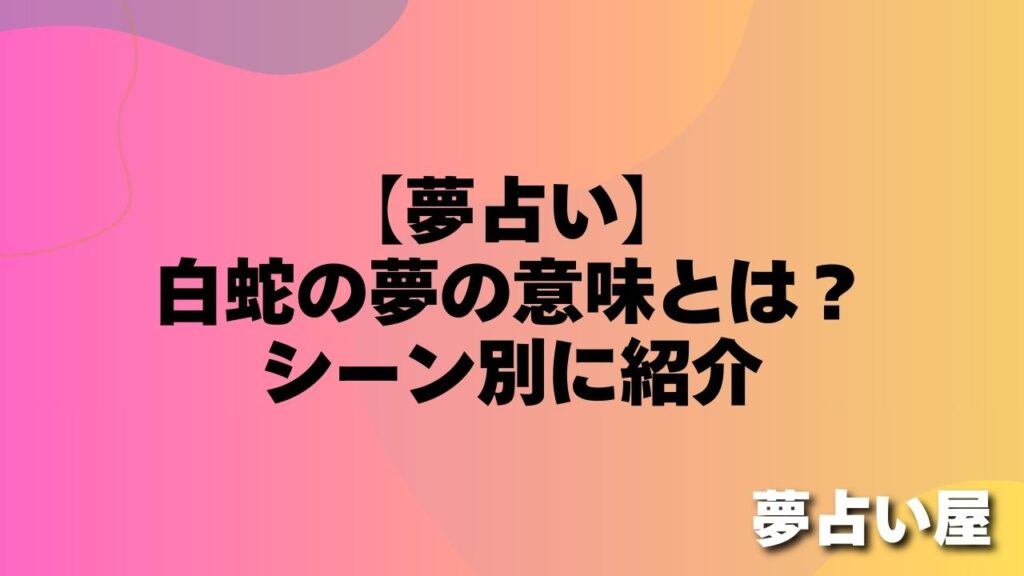 「真っ白で神々しい蛇が夢に出てきて、不思議な気持ちになった…」 「白蛇の夢は縁起が良いと聞くけれど、本当のところはどうなの?」 現実ではなかなかお目にかかれない白蛇が夢に現れると、何か特別なメッセージが隠されているのではないかと神聖な気持ち... -
