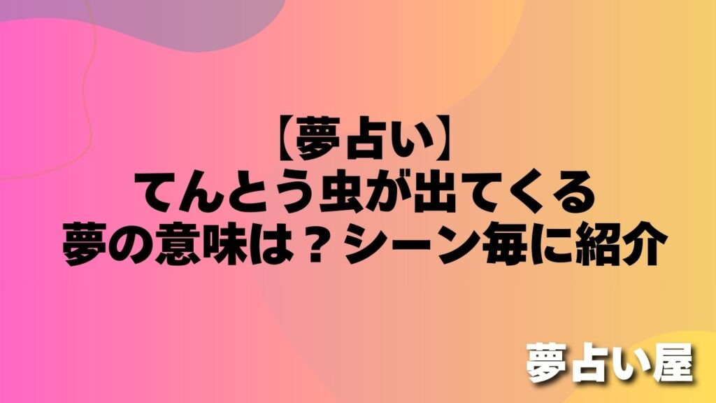 小さくて可愛らしいてんとう虫。 夢の中に出てきたら、なんだか幸せな気分になりますよね。 実は夢で出てくるてんとう虫は、占いの結果として、世界中で「神の使い」や「幸運のシンボル」として親しまれている大吉夢の代表格です。 あなたの「対人運」「金... -