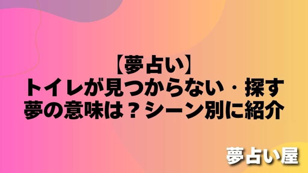 【2026年最新占い】トイレが見つからない・探す夢の意味は?シーン別に紹介