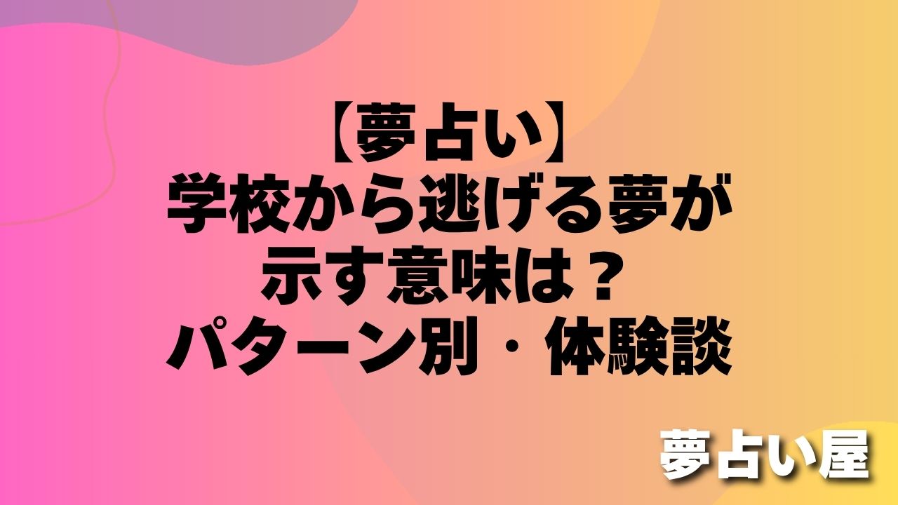 学校から逃げる夢は、現実の重圧からの解放願望・問題の回避・または自分らしさを取り戻したいという切実な欲求を象徴しています。