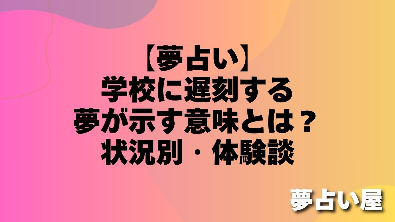 学校に遅刻する夢は、現実生活における焦り・締め切りや約束へのプレッシャー・「間に合っていない」という慢性的な自己評価の低さを象徴しています。