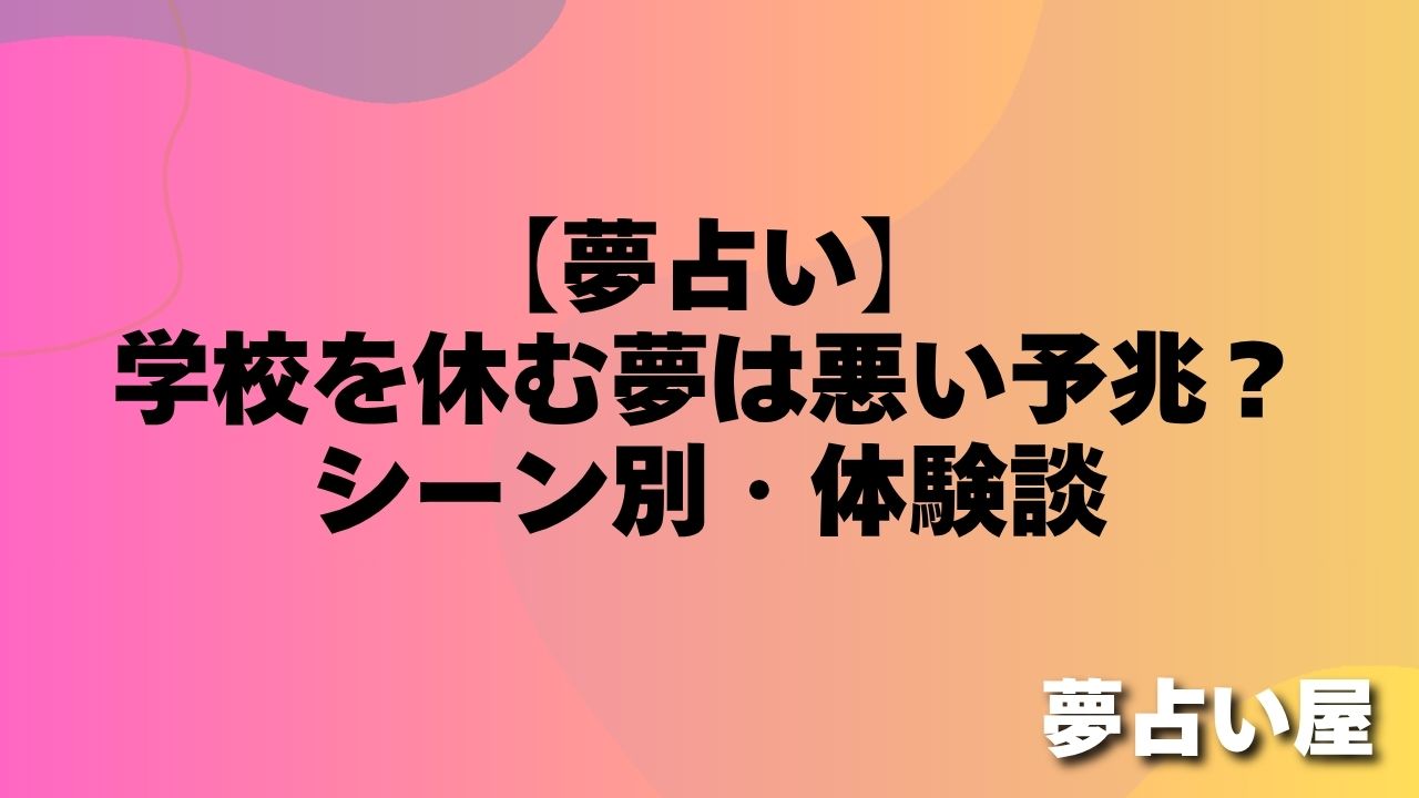 この記事では、学校を休む夢の意味を、罪悪感を感じる・親に休むと伝えるなど15パターン別に解説します。