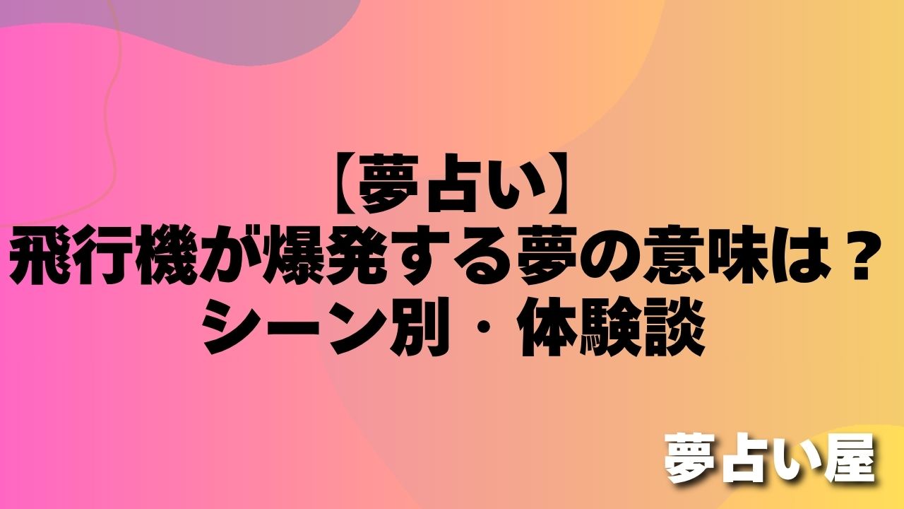 この記事では「飛行機が爆発する夢」の意味を、爆発の場所・自分の立場・爆発後の感情など15パターン別に詳しく解説しています。