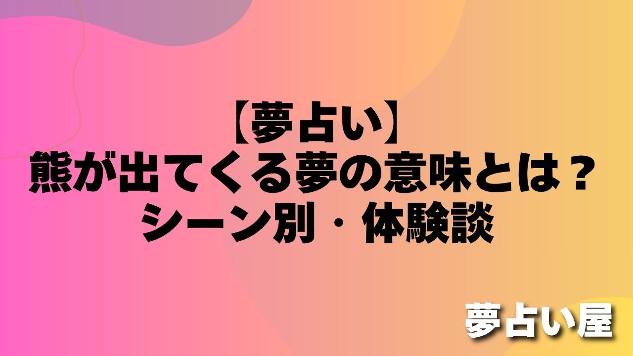 この記事では、熊が出てくる夢の基本的な意味から、熊の様子・距離感・色・場所など15パターンに分けて詳しく解説します。ぜひ参考にしてみてください。
