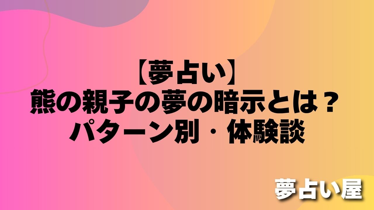 夢占いにおいて熊の親子は、家族の絆・保護と被保護の関係・親子間の感情・育てることと育てられることを象徴することが多いとされています。