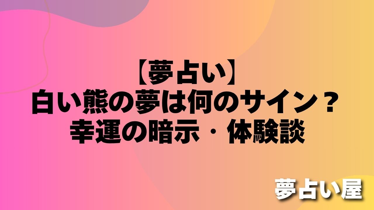 白い熊の夢が示す基本的なメッセージは、幸運の訪れ・清らかな新しい始まり・精神的な浄化・強力な守護です。怖い印象を受けた場合も、夢全体の状況をよく振り返ることが大切です。
