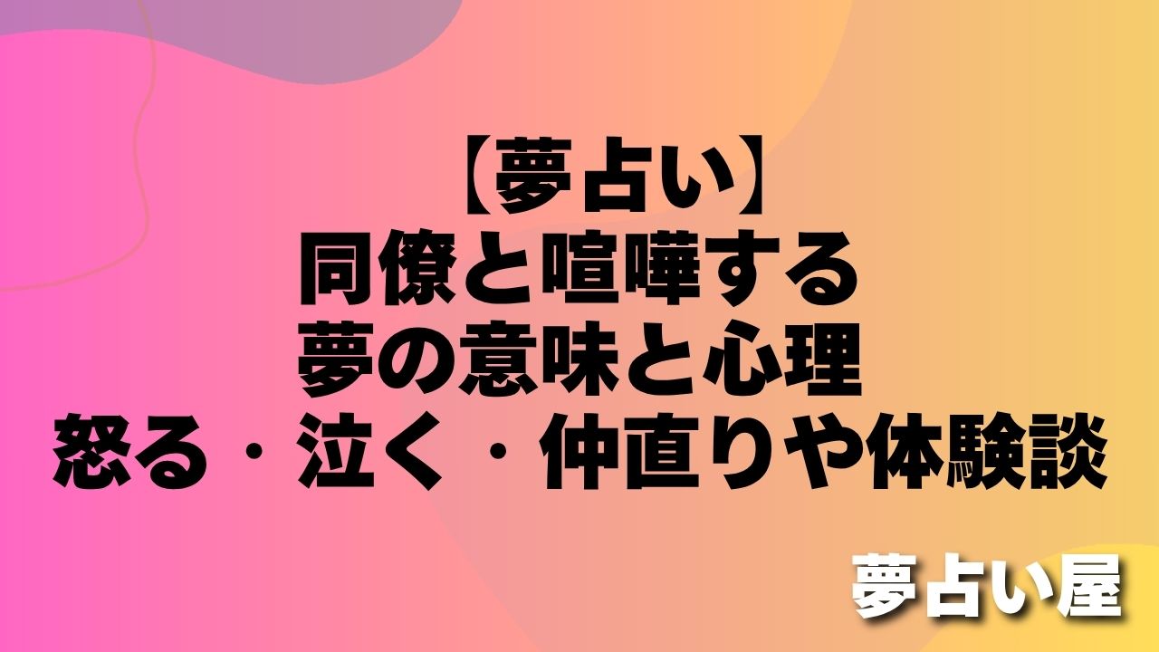 同僚との喧嘩の夢は、職場でのストレスや抑圧された感情が表面化しようとしているサイン。実際の関係改善のヒントも隠れているんです。一緒に探っていきましょう。