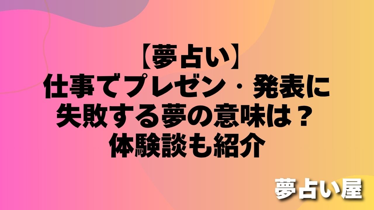「プレゼンが失敗する夢を毎晩見ています。来月、実際に大事なプレゼンがあるのに、この夢の意味は何ですか?」
