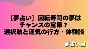 【夢占い】回転寿司の夢はチャンスの宝庫?選択肢と運気の行方・体験談 「夢の中で回転寿司に行って、次々と流れてくるお寿司にワクワクした!」「食べたいネタが全然回ってこなくて、夢の中で少しイライラしてしまった…」 身近で楽しい外食...