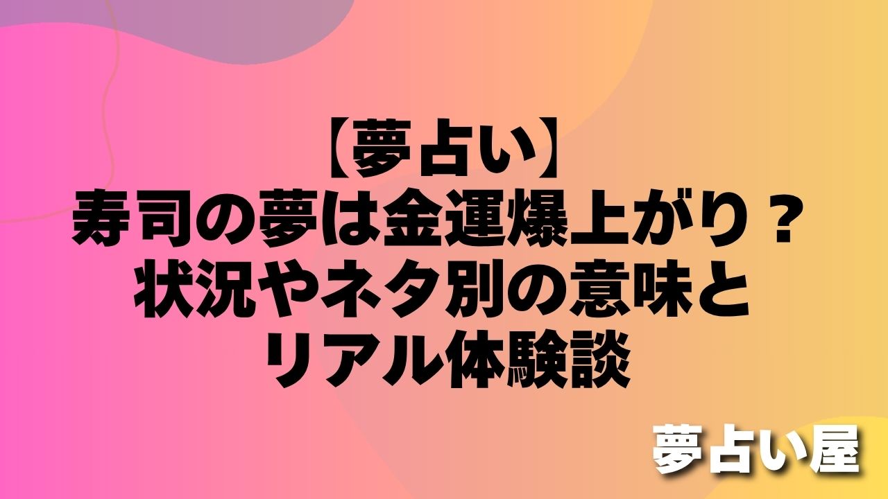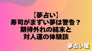 【夢占い】寿司がまずい夢は警告?期待外れの結末と対人運の体験談 「せっかくのお寿司なのに、夢の中で食べたらすごくまずくてガッカリした…」「ネタが古くて、飲み込むのが辛いお寿司の夢を見て気持ち悪かった」 現実世界ではご馳走で...