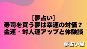 【夢占い】寿司を買う夢は幸運の対価?金運・対人運アップと体験談 「デパ地下で、すごく豪華なお寿司のパックを買ってウキウキして帰る夢を見た!」「スーパーで半額になったお寿司を、ラッキー!と喜んで買う夢だった」 現実世界でも、...