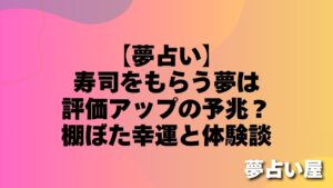 【夢占い】寿司をもらう夢は評価アップの予兆?棚ぼた幸運と体験談 「夢の中で、知り合いから豪華なお寿司の折り詰めをもらってテンションが上がった!」「出前のお寿司をご馳走になって、すごく幸せな気分で目が覚めた」 現実世界でも、...
