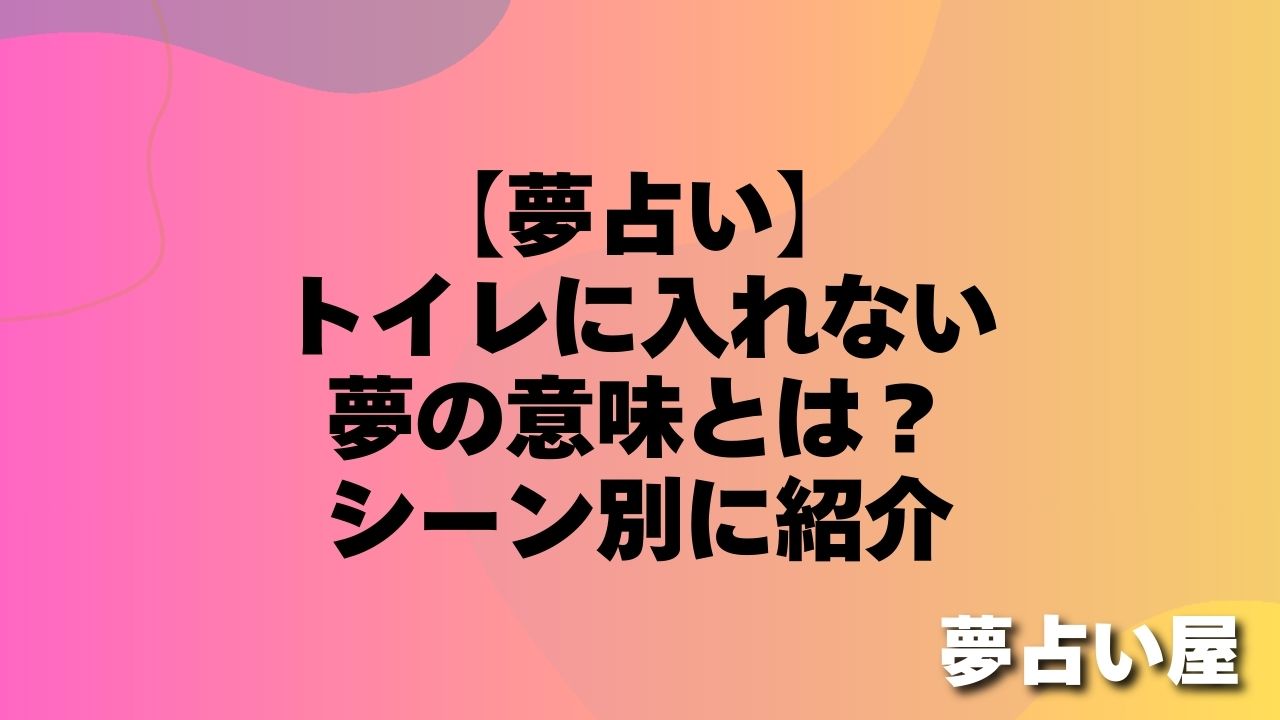「目の前にトイレがあるのに、汚すぎたり人がいたりして使えない夢を見た」