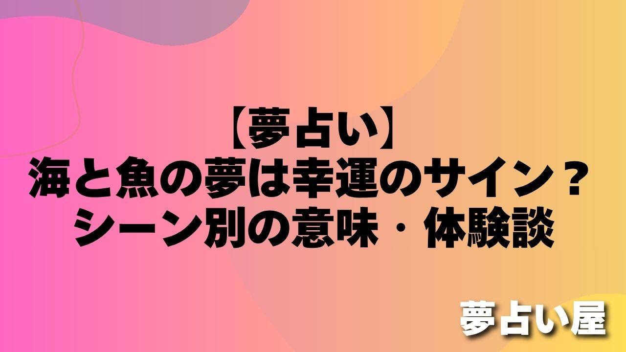 海と魚の夢は、全体的に幸運・チャンス・豊かさを示す吉夢が多いです。特に大きな魚を釣る夢や群れをなす魚の夢は強い金運・好運のサインです。ただし魚が逃げたり、サメが登場する夢は注意が必要。夢の詳細をよく思い出し、今の自分の状況と照らし合わせてみましょう。
