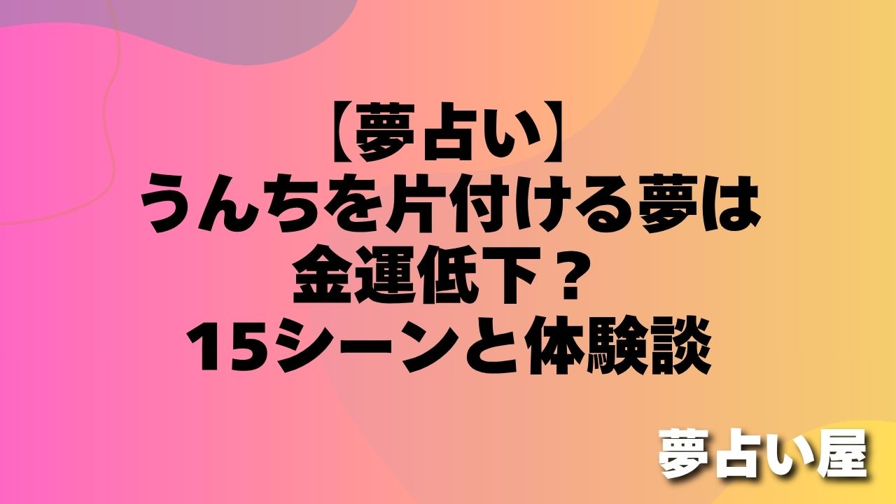 うんちを片付ける」夢のスピリチュアルな意味を、誰のものだったか、どんな状況だったかなど15のパターンで徹底解説します。当サイトに寄せられた
