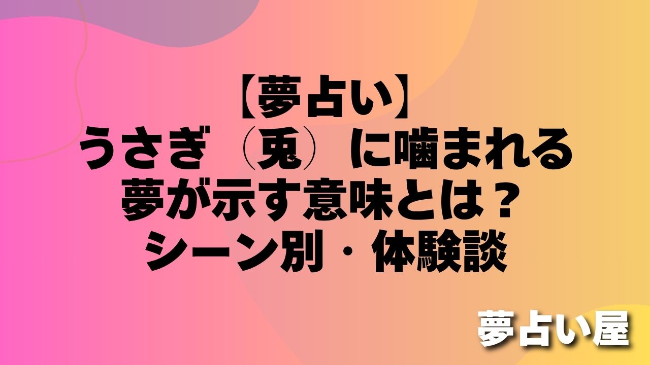 この記事では、うさぎ(兎)に噛まれる夢の基本的な意味から、「噛まれた場所」「うさぎの色」「痛みの強さ」など、シーン・状況ごとに15パターンで解説しています。ご自身の夢と照らし合わせてみてくださいね。