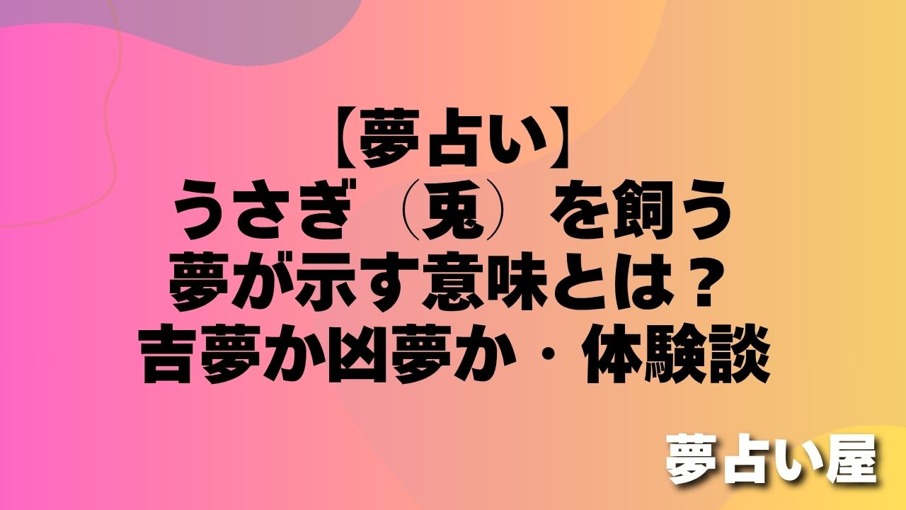 夢占いにおいてうさぎ(兎)を飼う夢は、主に愛情・責任感・豊かさへの意欲・育てることへの喜びを示しています。ペットを飼うという行為は「大切な存在を自分の生活に迎え入れる」ことを意味しており、基本的には非常に吉兆な夢となることが多いです。